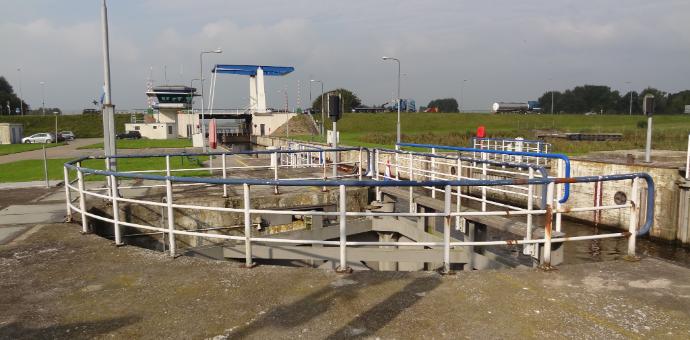 Het is niet duidelijk welk afsluitmiddel voor de nivelleerschuiven is toegepast.